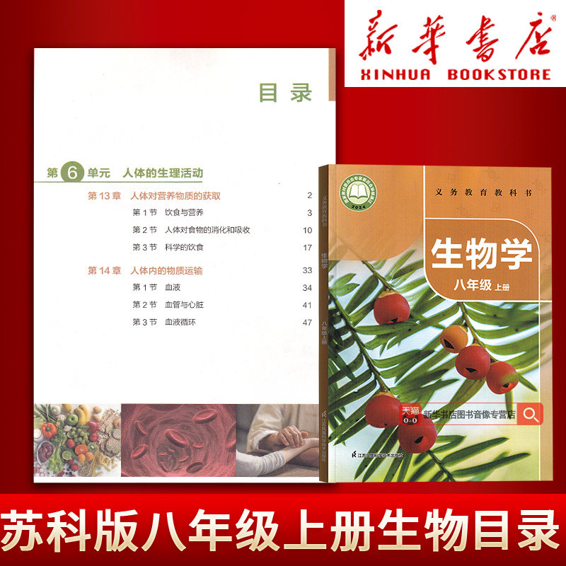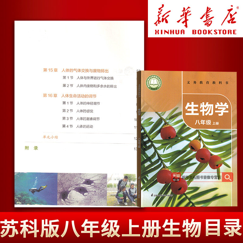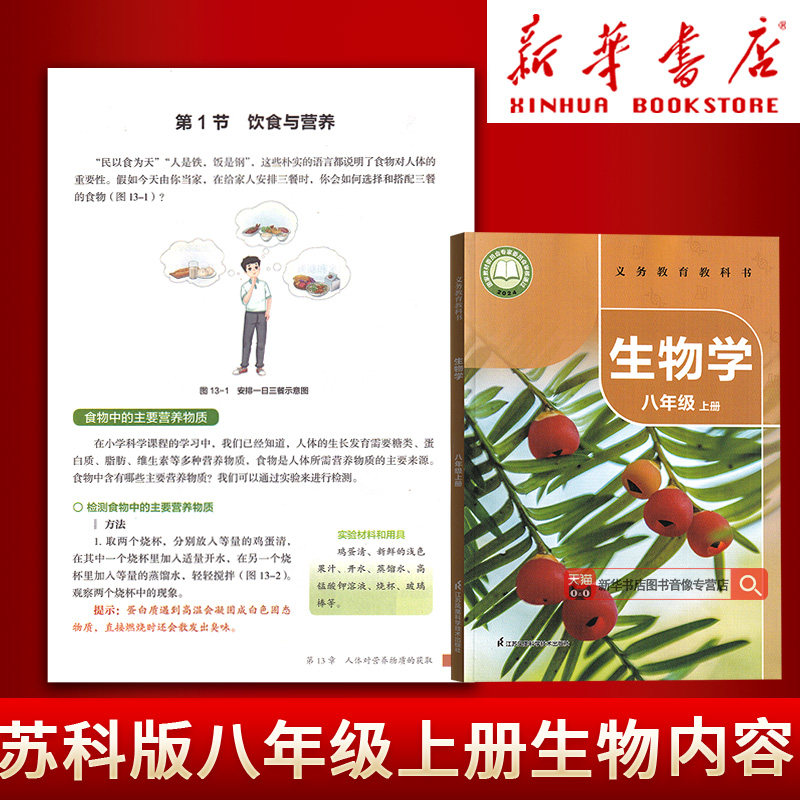 天猫【新华书店正版】2026使用初中8八年级上册生物学苏科版课本8八年级初二2上册生物书教材教科书苏科版江苏凤凰科学技术出版社