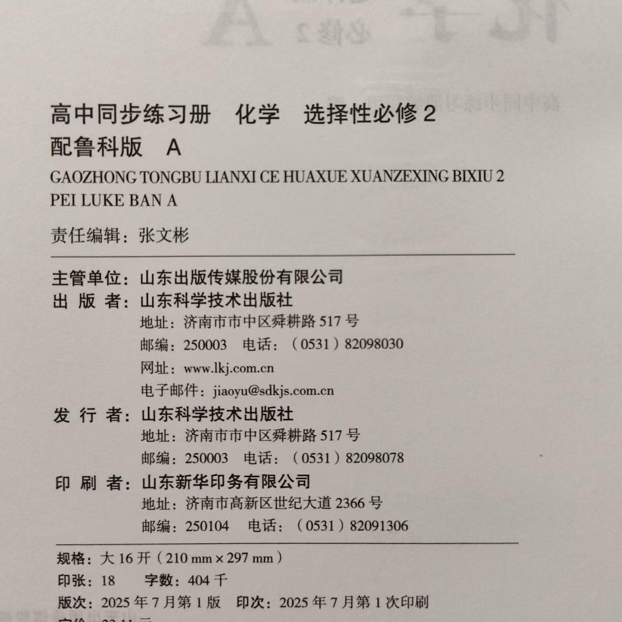 2025秋A层配鲁科版《高中同步练习册 化学 选择性必修2》由山东科学技术出版社精心编写,紧扣鲁科版教材内容,适用于高二学生同步学习与巩固提升。本书按章节编排,题型丰富,涵盖基础巩固、能力提升与拓展探究,注重知识点的系统性与层次性,A层设计更强调基础夯实与核心素养培养。每节配有典型例题解析与针对性训练,帮助学生深入理解物质结构与性质、化学反应原理等核心内容。同时融入高考真题与原创试题,强化解题能力与应试技巧,是高二化学学习的优质辅助资料,助力学生稳步提升学科水平。