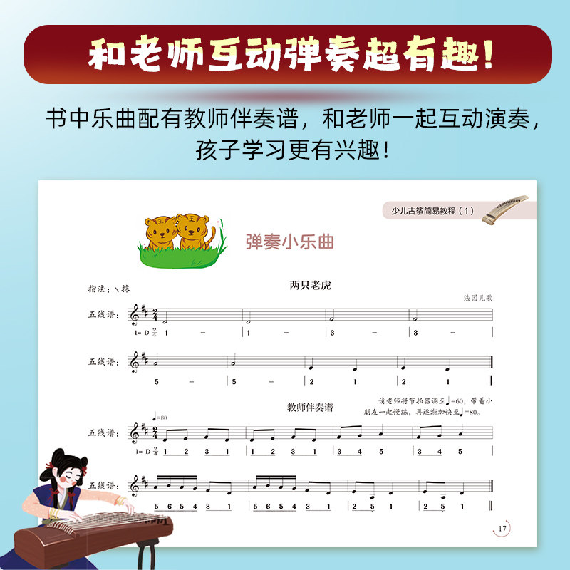 天猫任选】少儿古筝简易教程123 6-12岁儿童古筝初学零基础入门练习曲教材教程曲谱古筝入门启蒙图书儿童古筝教学书自学古筝曲集 正版