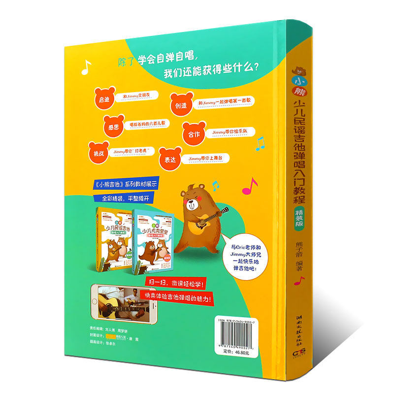 《正版小熊少儿民谣吉他弹唱入门教程(精装版)》是专为儿童设计的零基础吉他自学教材,由湖南文艺出版社精心出版。本书采用图文并茂、循序渐进的方式,结合趣味小熊形象,激发孩子学习兴趣,涵盖持琴姿势、和弦指法、节奏训练及简单弹唱技巧,适合亲子共学。书中精选多首经典儿歌与流行曲目,配有清晰曲谱与二维码视频示范,让孩子轻松掌握吉他入门技能。精装设计耐用美观,既是实用教材,也是馈赠佳品,助力孩子在音乐启蒙中收获快乐与自信。