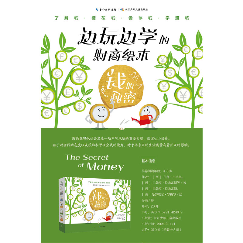 《钱的秘密》(5册精装礼盒)是一套专为儿童设计的财商启蒙绘本,通过生动有趣的故事带领孩子认识金钱、理解储蓄、消费与投资的基本概念。每册围绕一个核心财商主题展开,语言浅显易懂,插图精美,让孩子在阅读中自然建立正确的金钱观。礼盒特别附赠“家庭存钱指南”卡牌游戏和“我是理财小能手”财商培养游戏,将知识转化为互动体验,鼓励亲子共玩,边学边练。在游戏中,孩子学会制定预算、理性消费与目标储蓄,潜移默化提升财商素养。这套寓教于乐的财商教育套装,是培养孩子未来经济独立能力的理想之选。