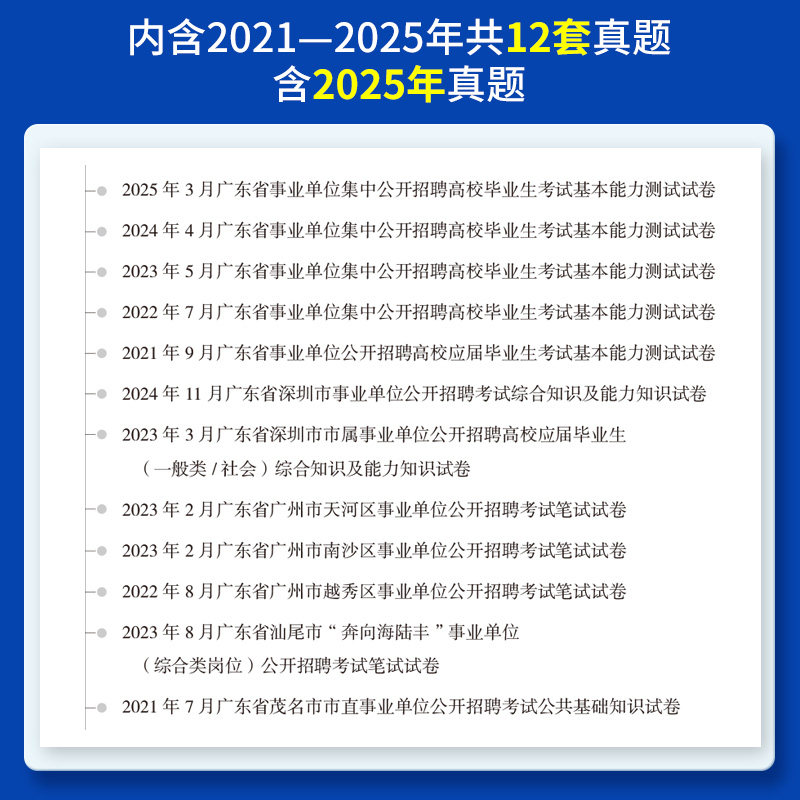 中公教育推出的《广东省事业编考试2026年教材历年真题库模拟试卷》专为备考2026年广东事业单位统考设计,涵盖公共基础知识、职业能力倾向测验(职测)及申论三大科目。资料精选近五年广东省统考试题,配套高质量模拟卷,紧扣考纲、题型全面,帮助考生熟悉命题规律。内容覆盖广州及全省多地市考情,注重实战演练与知识点精讲,配有详细解析,强化应试技巧。适用于参加广东省事业单位公开招聘考试的考生,是系统复习、高效刷题的理想备考资料,助力考生夯实基础、提升成绩,顺利上岸。