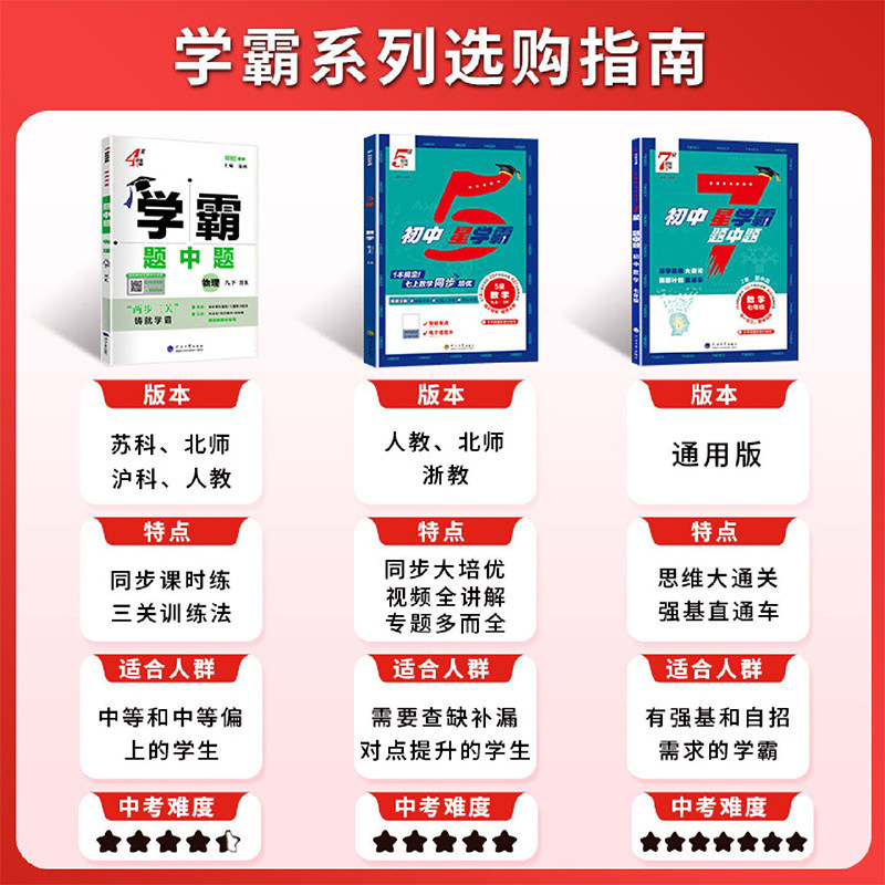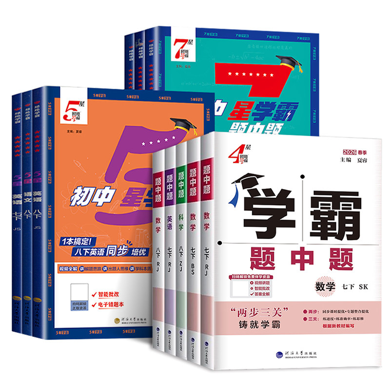 天猫2026春季学霸题中题4星5星7星数学英语物理化学七年级八九年级下册上册人教苏科版译林沪教版中考同步教材练习册初中初一初二初三