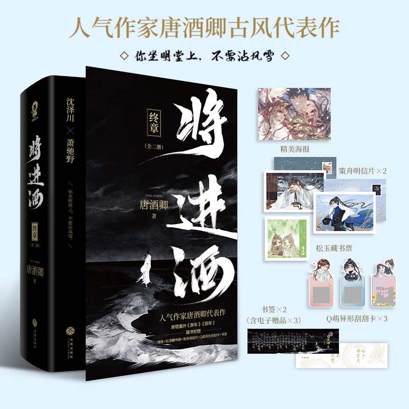 《将进酒》套装是由知名作家唐酒卿所著的完结小说全套四册正版书籍。本套装是一部古风权谋小说,具有精彩纷呈的剧情和丰富的人物形象。小说包含两个男性主角,展示了复杂的权力斗争和令人陶醉的故事情节。本套装中的书籍采用优质印刷,色彩精美,以呈现完美的阅读体验。全套四册皆为精彩演绎之作,内容丰富有趣。无论是在书店还是在网购平台购买,《将进酒》套装都将给你带来难忘的阅读之旅。