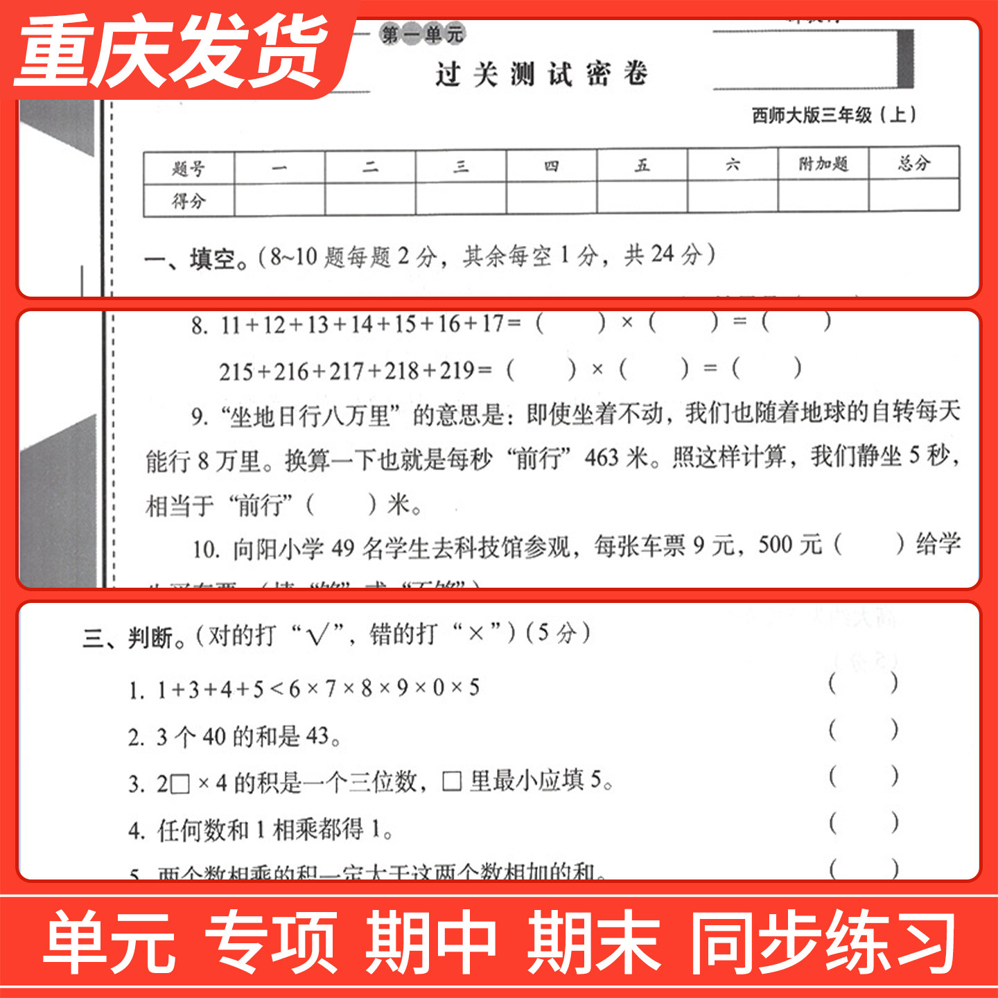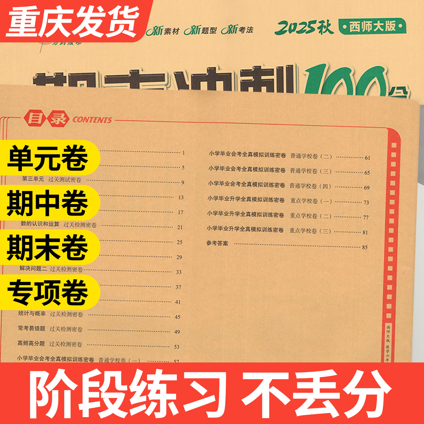 天猫西师版数学试卷期末冲刺100分一二三四五六年级下册上册试卷测试卷全套人教语文数学西师小学同步教材练习册单元真题考试卷子一百