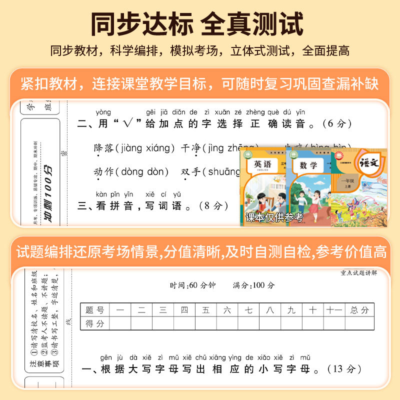 一年级上下册语文数学英语试卷二三四五六年级测试卷全套同步练习册练习题人教版单元考试综合卷子期中期末冲刺一百分小学真题卷