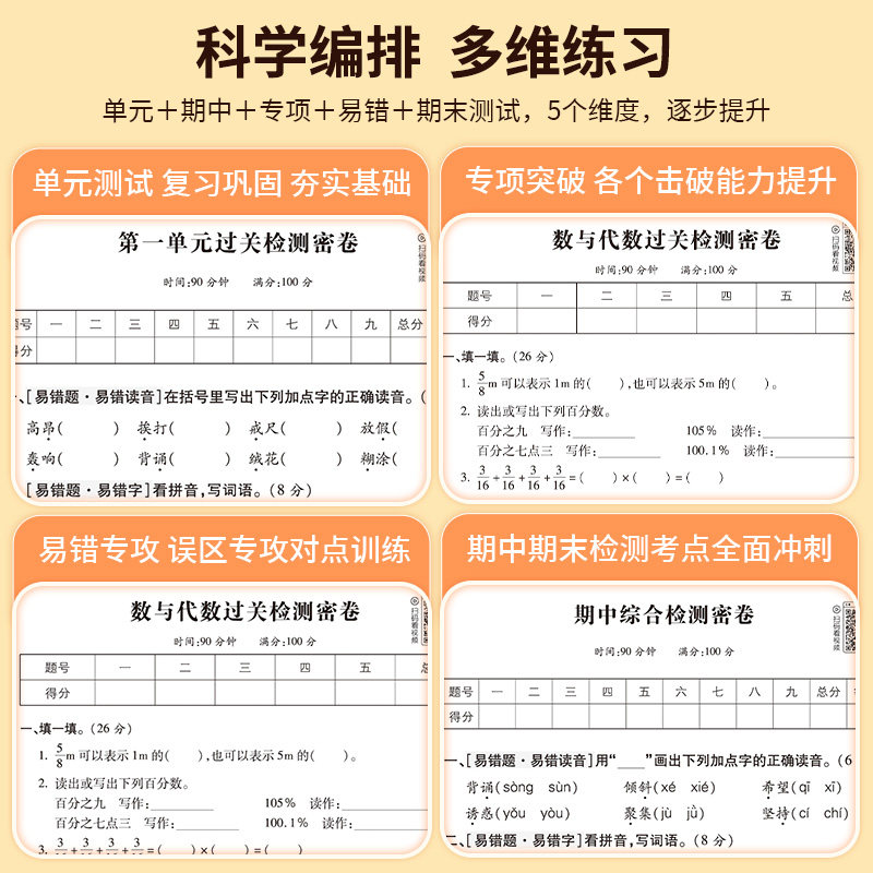 天猫2025新版冲刺100分 小学一二三四五六年级上册试卷全套测试卷语文数学英语人教版教材同步练习册单元期中期末专项模拟考试卷子黄冈