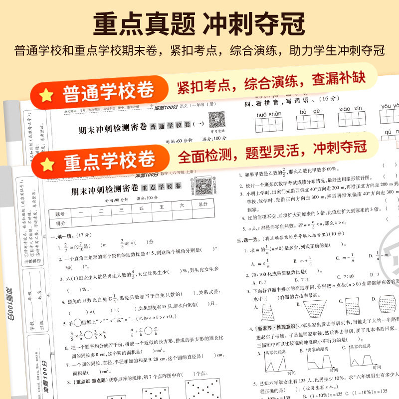 天期末冲刺100分 一年级二年级三四五六年级上下册试卷测试卷全套人教版语文数学英语小学单元专项训练期中期末考试黄冈一百分卷子