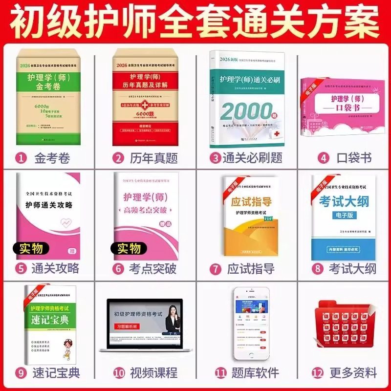 2026年护师资格考试初级护理学师备考资料全面上线,涵盖历年真题库、模拟试卷、教材精讲及权威习题集。人卫版教材夯实基础,雪狐狸随身记便携高效,轻松过系列梳理重点难点,博傲题集与易哈佛习题集提供海量练习,助力查漏补缺。配套视频课程由资深讲师授课,深入浅出解析考点,提升应试能力。资料紧扣最新考试大纲,题型贴近实战,适合不同阶段复习使用。无论是系统学习还是冲刺提分,这套组合资料都能帮助考生高效备考,顺利通过2026年初级护师资格考试,实现职业梦想。