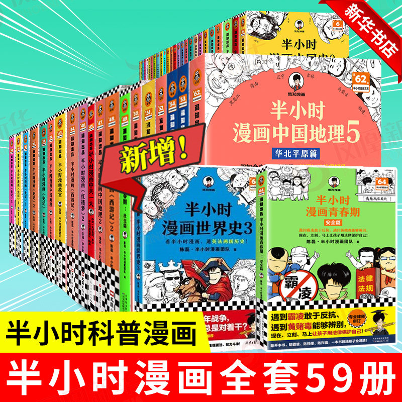 《半小时漫画中国史》全套系列是“混知”团队打造的畅销历史科普读物,以幽默风趣的漫画形式,将《中国史》《世界史》《红楼梦》《三国演义》《西游记》《水浒传》《史记》《中国地理》等经典名著与知识浓缩成轻松易懂的故事。语言活泼,画风诙谐,打破传统历史书的枯燥,让孩子在笑声中掌握重要历史脉络和文学精髓。内容严谨又不失趣味,适合小学生及青少年阅读,是激发学习兴趣、拓展知识面的优质正版读物,深受家长和孩子喜爱,被誉为“让孩子爱上历史的启蒙神器”。