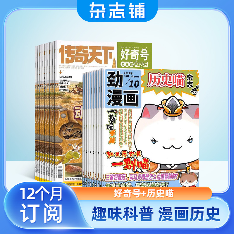 天猫历史喵+好奇号杂志组合订阅 2026年1月起订 1年共24期 少儿兴趣阅读历史漫画书 如果历史是一群喵 肥志创作团队出品 杂志铺