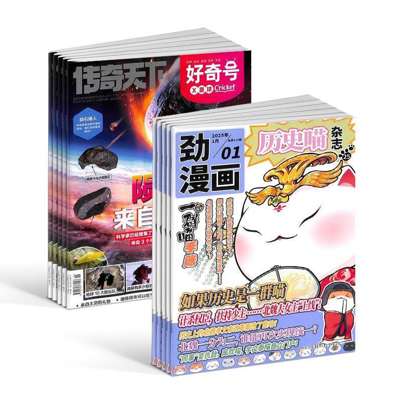 历史喵+好奇号杂志组合订阅是专为少年儿童打造的阅读宝藏。自2026年1月起,这份订阅将为您的孩子带来一年的精彩内容,共24期。这份订阅融合了历史漫画书和杂志的精华,由知名创作团队肥志打造,以孩子们喜爱的动漫形式展现历史喵的冒险故事,让孩子们轻松掌握历史知识。同时,好奇号杂志则提供了丰富多样的科普知识和趣味内容,激发孩子们的好奇心。这是一份理想的订阅,适合喜欢历史和科普知识的孩子们,让他们的阅读之旅充满乐趣和知识。