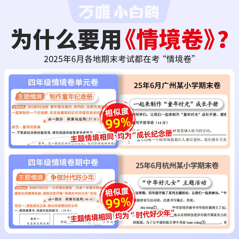 天猫2026万唯小白鸥小学情境卷同步单元期末测试卷子情景卷一二升三四五六年级上下册语文数学英语万维小白欧鸽预复练习题册学霸必刷卷