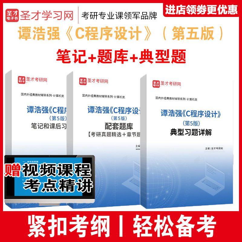 天猫3本全套资料 谭浩强 C语言程序设计第五5版教材笔记课后习题详解+配套题库考研真题答案+典型题习题详解 赠 视频网盘资料