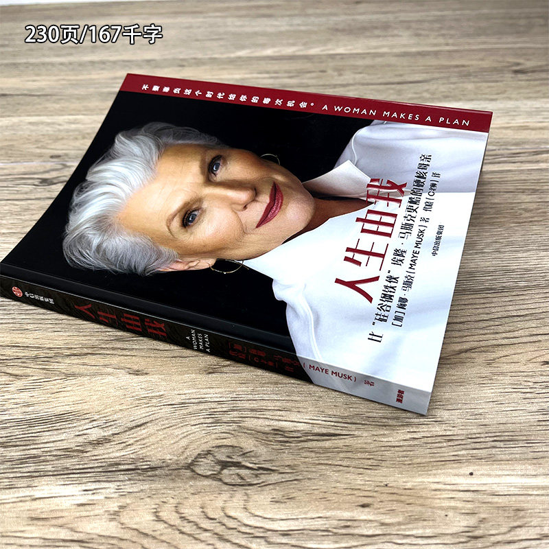 《人生由我》中文版由特斯拉CEO埃隆·马斯克的母亲梅耶·马斯克亲笔撰写,是一部真实、励志又充满智慧的硬核女性成长指南。作为超模、营养师和职场妈妈,梅耶以70余年的人生经历,讲述了如何面对逆境、突破年龄与性别限制,活出自我。书中不仅有她作为“硅谷钢铁侠”母亲的独特视角,更展现了一位独立女性不断学习、勇敢追梦的坚韧精神。语言平实却力量十足,激励无数读者重新定义人生可能。该书由中信出版社正版引进,畅销全球,是当代女性不可错过的励志佳作,被誉为比成功学更真实、比传记更动人的生命启示录。