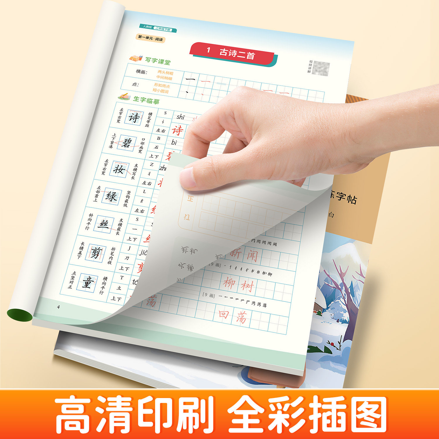 天猫2026春新版人教版一二三四五六年级上册下册语文练字帖课本同步小学生专用楷书字帖视频教学全彩每日一练正楷好字通硬笔书法练习本