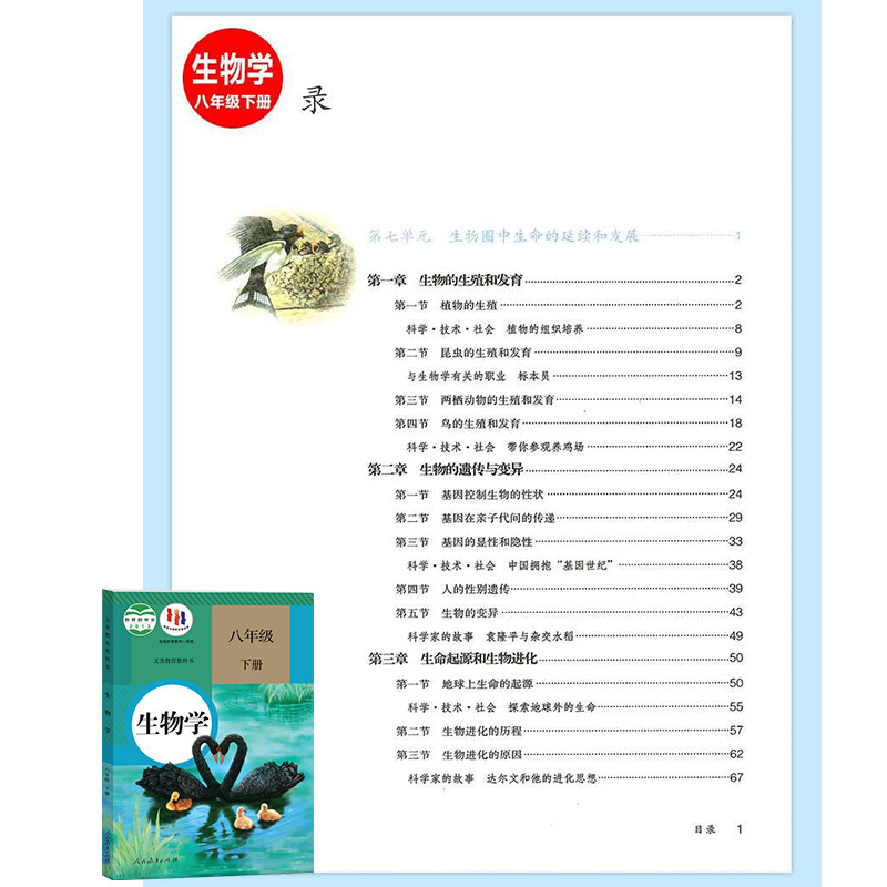 天猫新华书店正版】八年级下册生物课本人教版教材2026春季预习初二8八下生物书地理历史语文学校指定教科书人民教育出版社2025新版