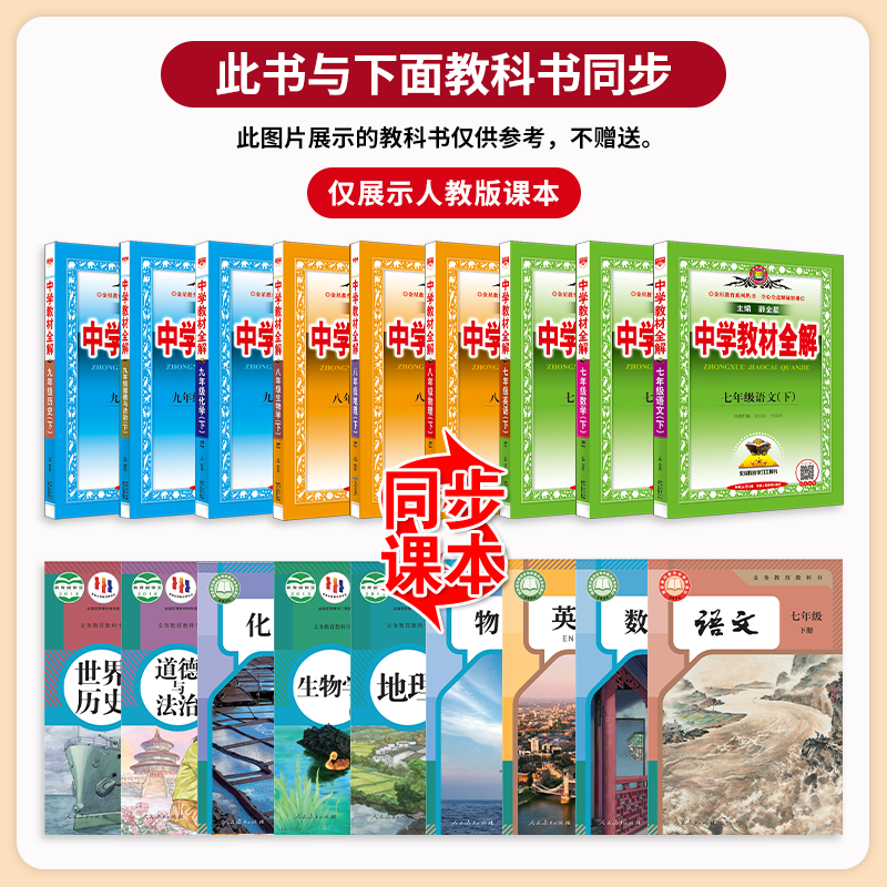 天猫中学教材全解七年级下册语文数学英语物理化学政治历史生物地理全套人教版初中初一7下同步课本教材解读辅导资料书上册8八年级九9