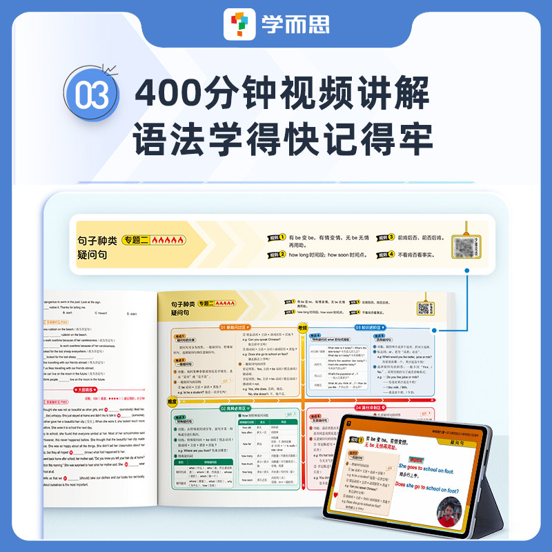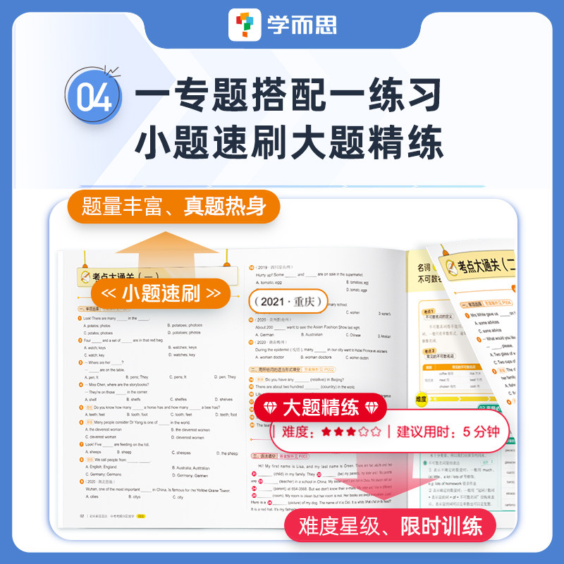 天猫学而思初中英语语法中考考频分区速学中考英语语法大全初一初二初三英语语法专项训练习题七年级八九年级中考语法书视频课复习资料