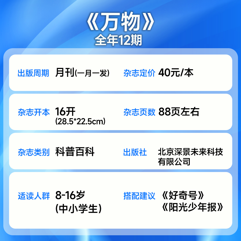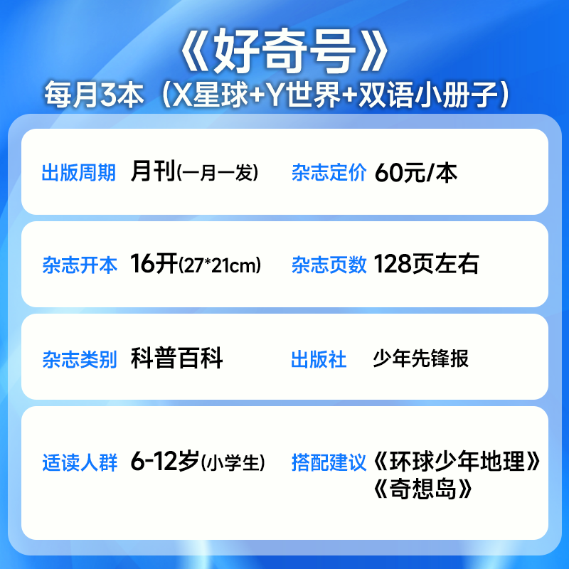 天猫【组合订阅】好奇号+万物杂志2026年起订全年订阅儿童科学科普历史星球青少年环球科学博物百科地理历史启蒙文化素养课外阅读书