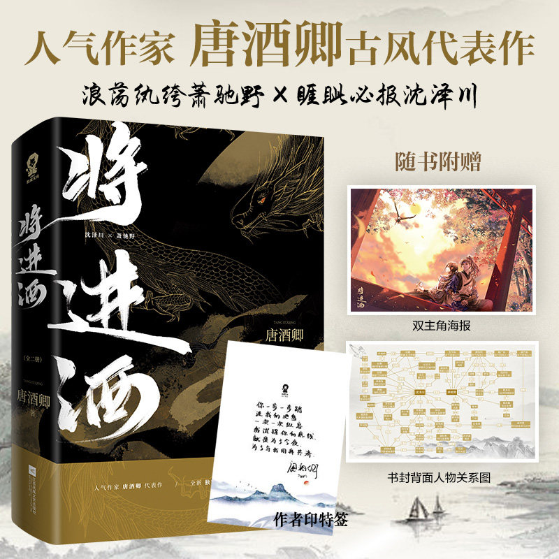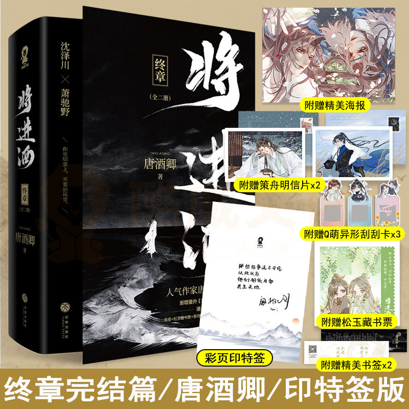 《将进酒》是唐酒卿创作的古风权谋小说,全文共四册,已在晋江文学城完结。故事以萧驰野与沈泽川的命运交织为主线,描绘乱世之中权谋博弈、家国情怀与深情羁绊。人物立体丰满,剧情跌宕起伏,文笔细腻恢弘,深受读者喜爱。此次由酷威文化推出的实体书套装,不仅完整收录正文,更附赠【双印特签】及精美定制赠品,极具收藏价值。无论是资深书迷还是新入坑读者,都能在纸页间感受那股磅礴的江湖气与深情厚谊。一套在手,尽览大周风云,共赴一场荡气回肠的文学盛宴。