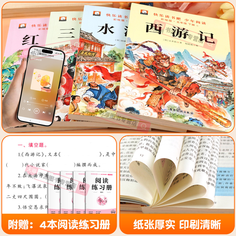 天猫四大名著原著正版小学生版五年级下册必读的课外书正版西游记三国演义青少年版本配套人教版快乐读书吧五下中国红楼梦水浒传全套5