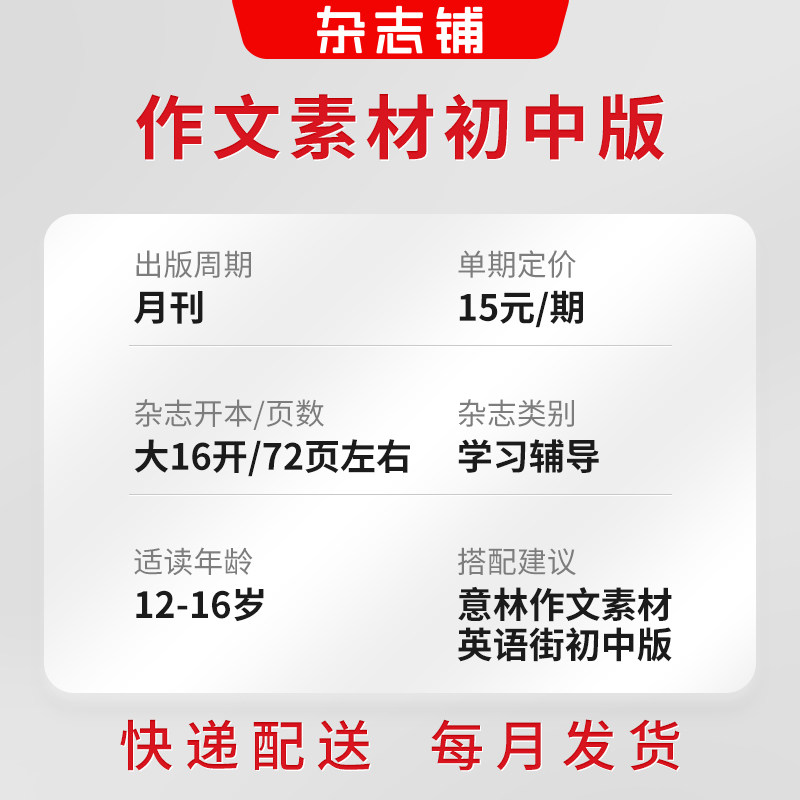 天猫作文素材初中版杂志 2026年1月起订 1年共12期 杂志铺 初中生作文素材选集作文提升文章阅读中考满分作文写作辅导期刊