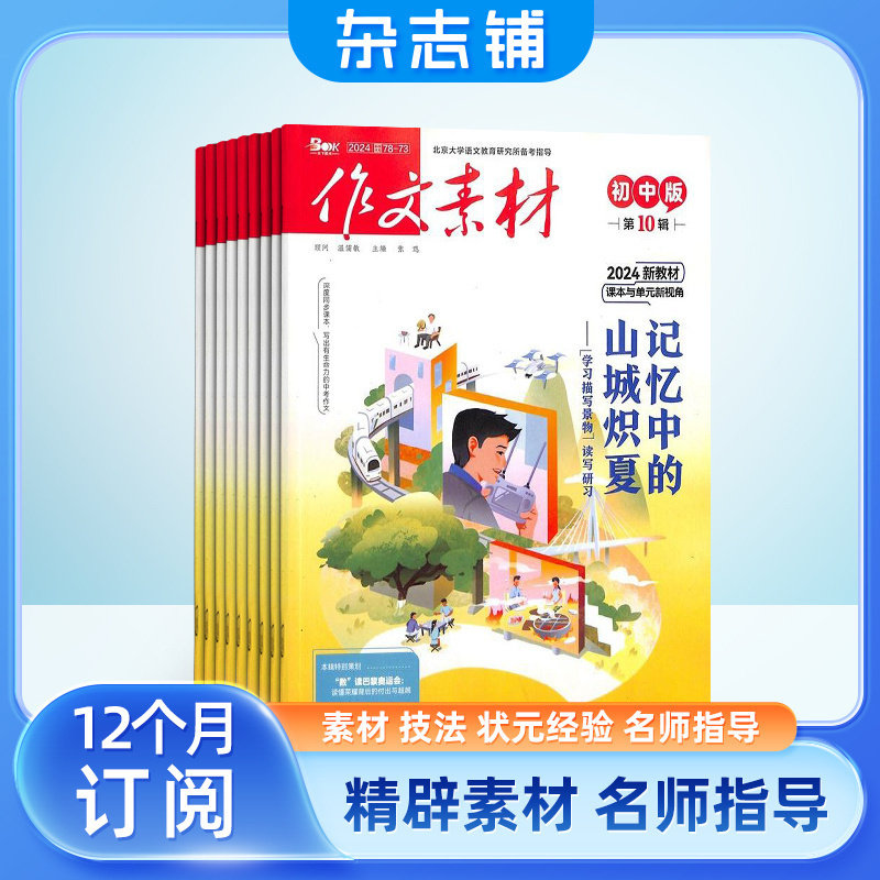 《作文素材·初中版》杂志自2026年1月起订,全年共12期,专为初中生打造,是提升写作能力的优质期刊。杂志精选鲜活时事、经典美文与中考满分作文,涵盖热点话题、人物故事、名言警句等丰富素材,帮助学生积累写作资源。每期设有写作技巧指导、范文精析与阅读拓展栏目,紧扣中考命题趋势,助力学生快速提升文章立意与表达能力。由杂志铺官方订阅,内容权威、编排实用,是初中生备战中考、提高语文素养的理想读物,让写作不再无从下笔,轻松写出高分作文。