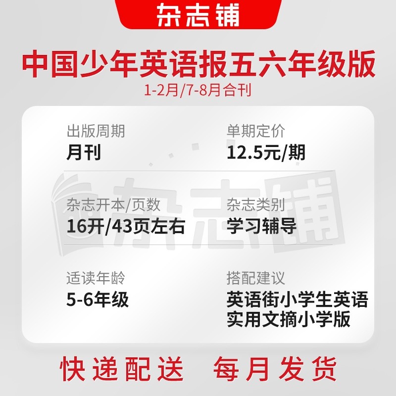 天猫【送好礼】中国少年英语报五六年级版杂志 2026年1月起订 1年共12期 杂志铺 全年订阅小学生5-6年级英语双语学习辅导书籍英语期刊