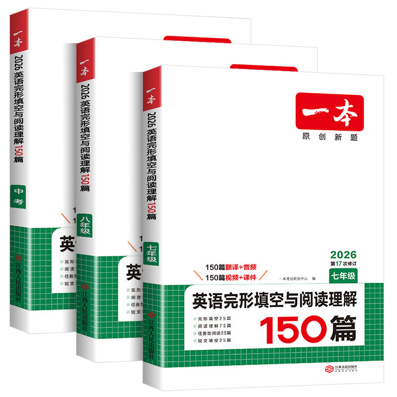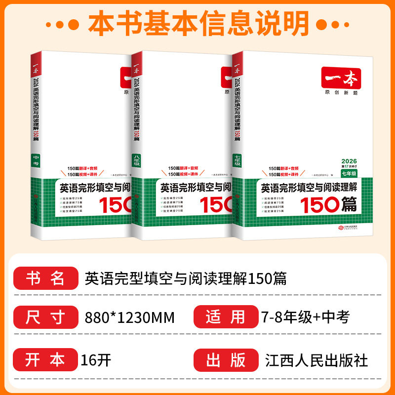 天猫浙江适用2026新版一本英语阅读理解与完形填空七八九年级中考英语专项训练人教版初一二初三试卷中考听力教辅练习题册复习资料试卷