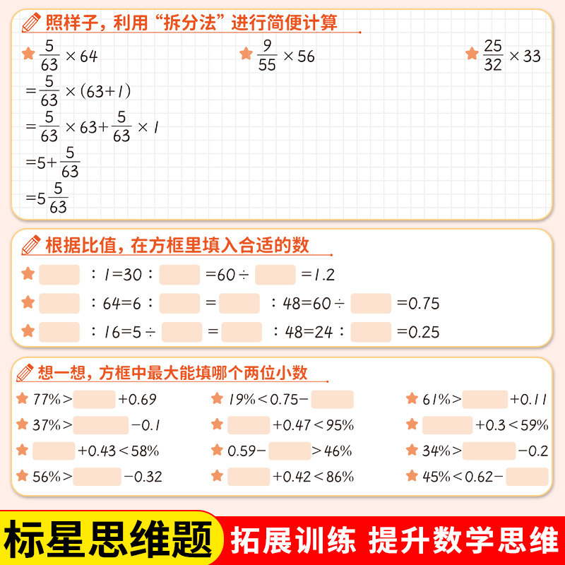 天猫六年级数学计算题强化训练上册下册口算笔算天天练人教教版口算题卡小学6下专项训练横竖式脱式计算练习题同步练习册小升初