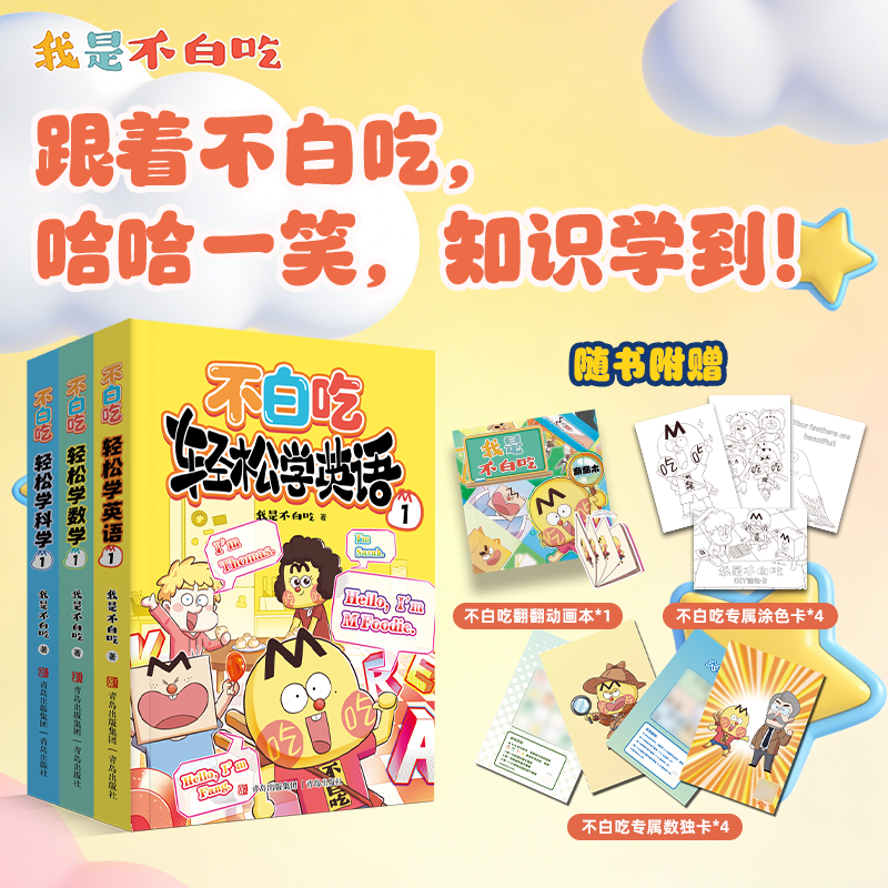 【重磅新书】不白吃轻松学英语、数学、科学系列科普漫画图书,专为儿童小学阶段设计,完美契合幼小衔接及课本内容。该系列以趣味漫画形式,将英语词汇、数学逻辑与科学知识巧妙融合,让孩子在轻松阅读中掌握学科要点。主角“不白吃”用幽默风趣的语言和生动故事,激发孩子学习兴趣,培养跨学科思维。内容紧贴新课标,涵盖拼音、数感、自然观察等关键知识点,助力孩子顺利过渡小学学习。图文并茂,寓教于乐,是家长和老师值得信赖的启蒙读物,让孩子爱上学习,轻松领跑新学期!