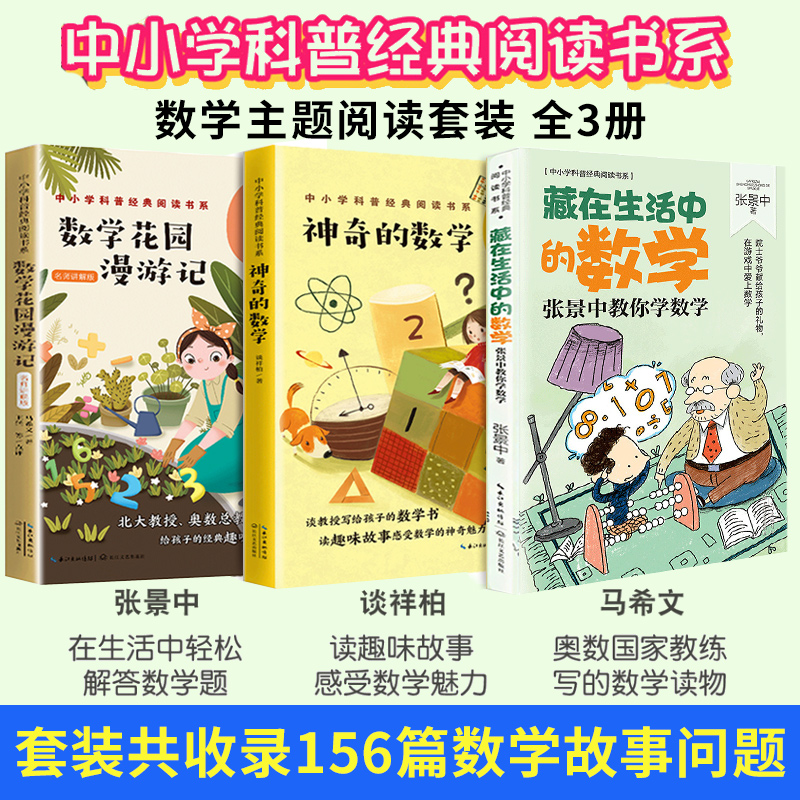 《数学花园漫游记》《神奇的数学故事》《藏在生活中的数学》是“中科院院士谈祥柏 张景中教你读中小学科普经典阅读书系”中的精品读物,专为小学三至五年级学生精心打造。书中通过生动有趣的数学故事、生活中的趣味现象和探索性游戏,将抽象的数学知识变得直观易懂。谈祥柏、张景中两位院士以深厚的学识和童趣的笔调,带领小读者走进奇妙的数学世界,激发学习兴趣,培养逻辑思维与创新能力。内容贴近课标,语言活泼,图文并茂,是孩子课外阅读的理想选择,让数学不再枯燥,而成为一场充满惊喜的花园漫游。