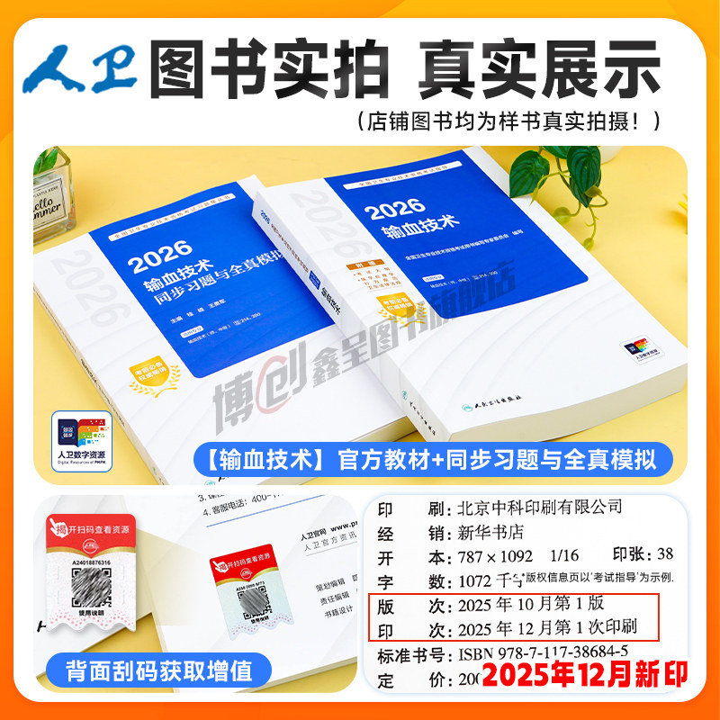 2026年人卫新版《输血技术(师)考试指导》是卫生专业技术资格考试官方推荐教材,由人民卫生出版社权威出版,紧扣最新考试大纲,内容涵盖血液采集、成分制备、输血检验、临床输血及质量管理等核心知识点。本书系统梳理考点,突出实用性与针对性,配套同步习题强化训练,帮助考生夯实基础、提升应试能力。可搭配2025年历年真题及模拟试卷使用,全面检验复习效果,把握命题趋势。适用于报考输血技术初级师(卫生资格中级职称)的考生,是备考复习的理想用书,助力高效通关。