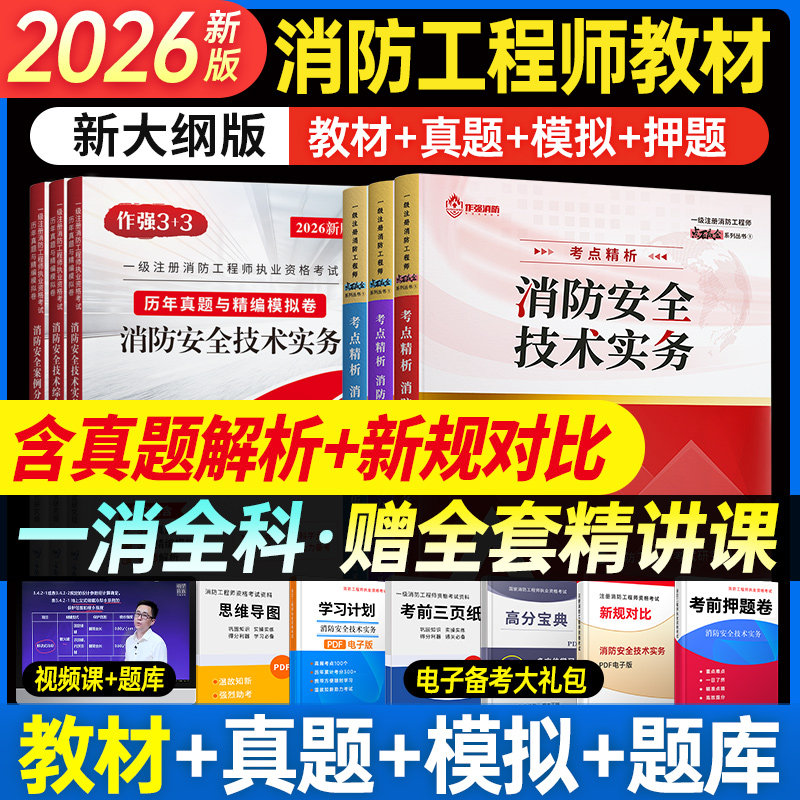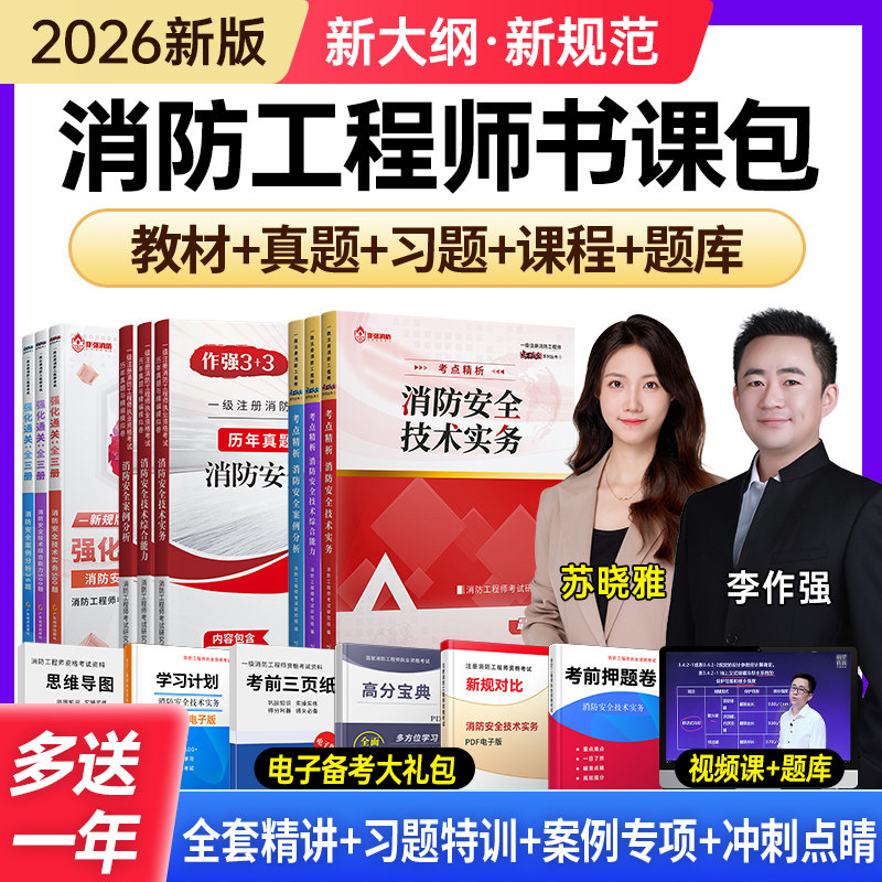 2026年新版注册一级消防工程师官方考试教材书课包,由嗨学网权威推出,全面覆盖《消防安全技术实务》《消防安全技术综合能力》《消防安全案例分析》三科核心内容。教材严格依据最新考试大纲编写,融合2025年真题解析与高频考点精讲,配套高清网课、智能题库及模拟习题集,助力考生高效备考。书课包涵盖一消、二消全阶段学习需求,含历年真题试卷、章节习题、冲刺密卷等丰富资料,支持多终端学习,讲练结合,强化应试能力。嗨学网专业教研团队精心打磨,助力考生一次通关,顺利取得一级或二级消防工程师资格证书。