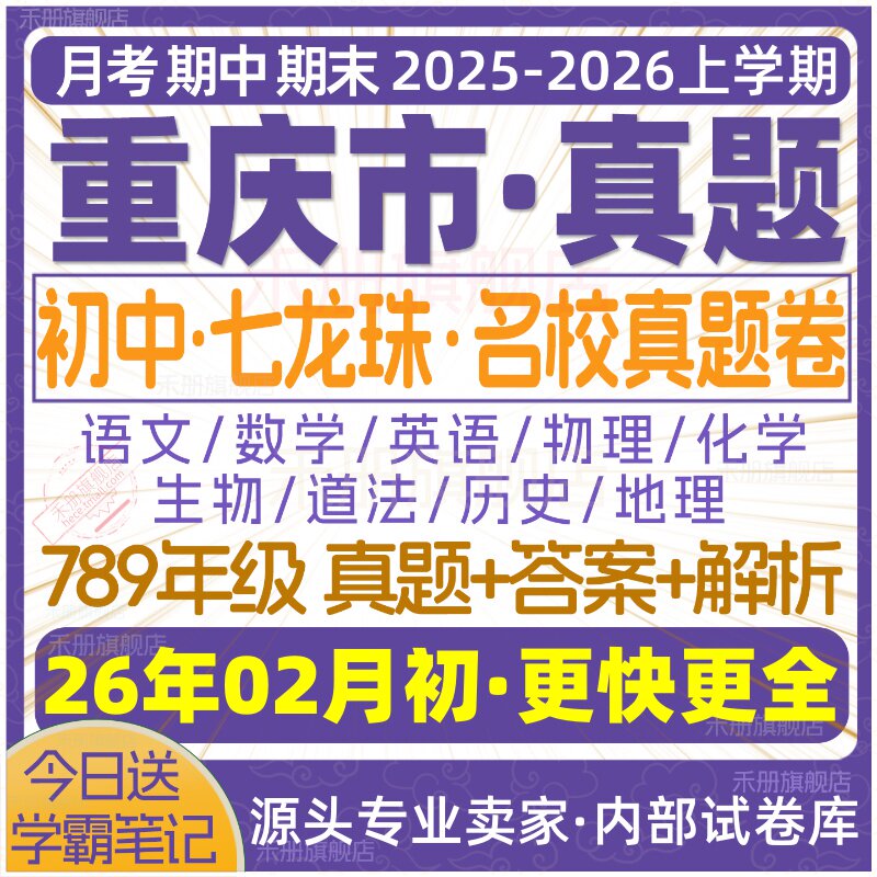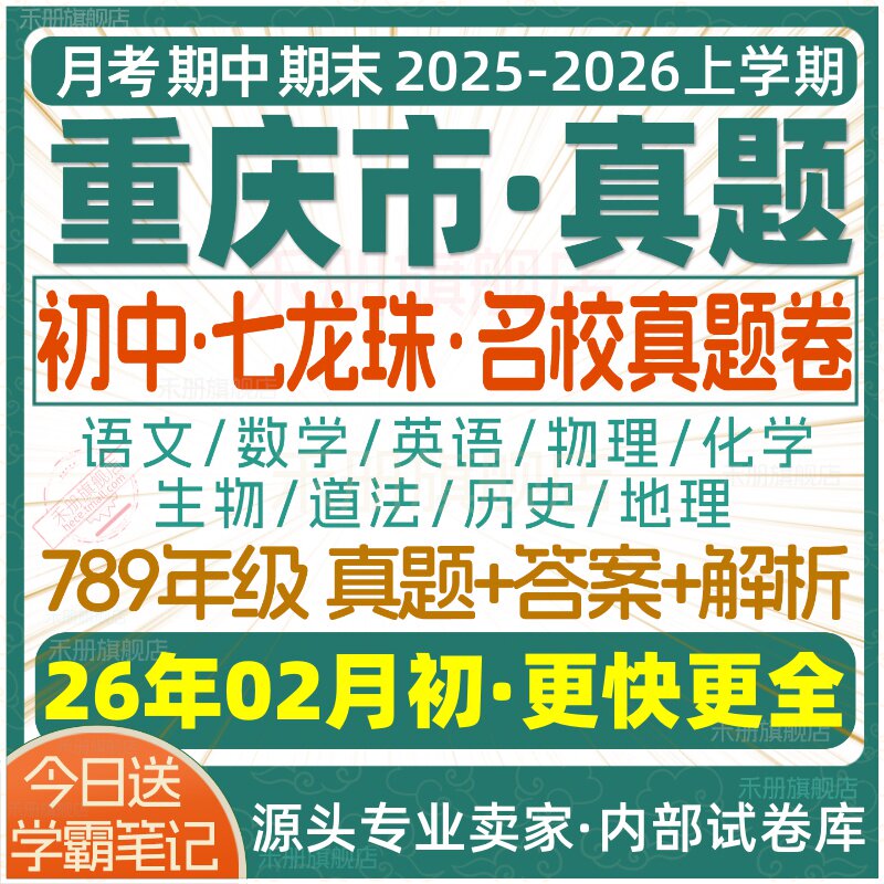天猫2026新版重庆市初中七八九年级上册下册月考期中期末七龙珠试卷真题初一初二初三数学语文英语物理化学生物地理历史道法试题电子版