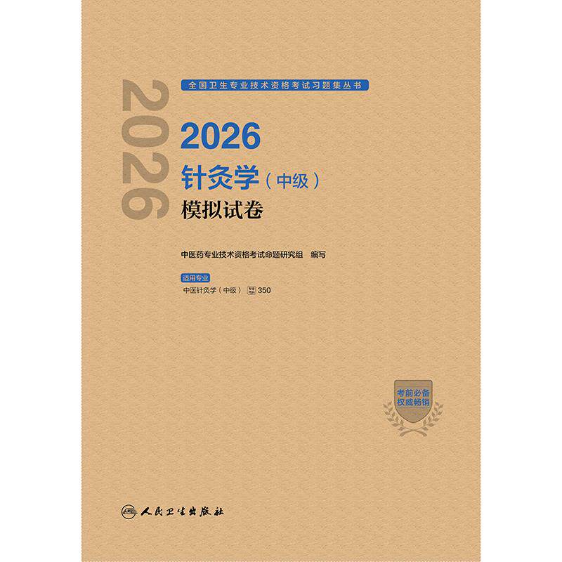 人卫版《2026年针灸学中级模拟试卷》由人民卫生出版社权威出版,专为全国卫生专业技术资格考试(代码350)中医针灸中级职称考生精心编写。本书紧扣最新考试大纲,融合历年真题精华,精选高质量模拟试题,全面覆盖经络腧穴、刺法灸法、针灸治疗等核心考点。题目设置科学合理,难易适中,配有详细解析,帮助考生查漏补缺、提升应试能力。作为官方推荐备考资料,本书由中医针灸领域资深专家编审,内容权威、实用性强,是广大考生高效复习、冲刺高分的理想选择。登录人民卫生出版社旗舰店官网即可正版购买,助力顺利通过职称考试。