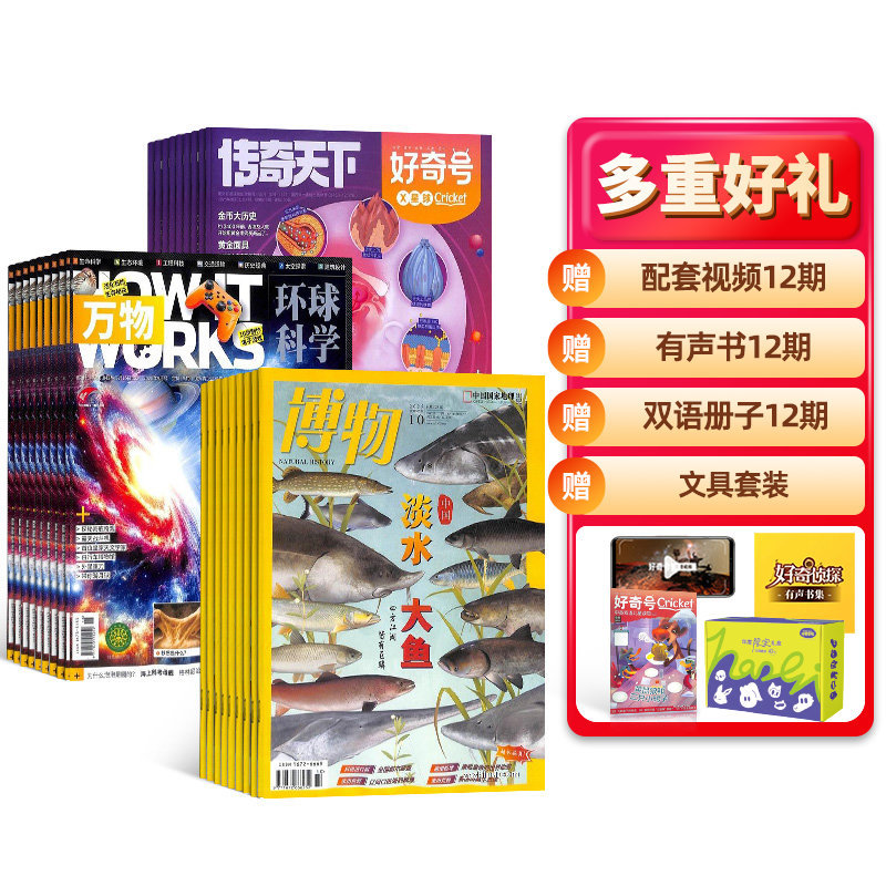 万物+博物杂志组合 杂志铺 2026年1月起订全年订阅共24期 8-18岁必备自然科学科普组合 理科脑+地理眼期刊书籍杂志订阅