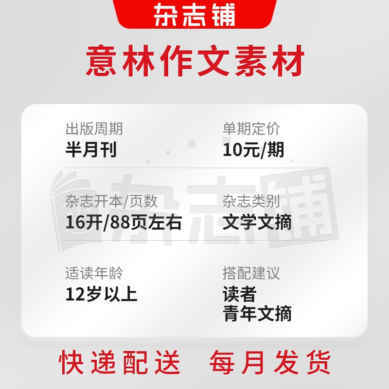 天猫【送好礼】意林作文素材杂志 2026年一月起订 1年共24期 杂志铺 写作指导积累 高考作文素材中高考语文中学生作文辅导课外阅读