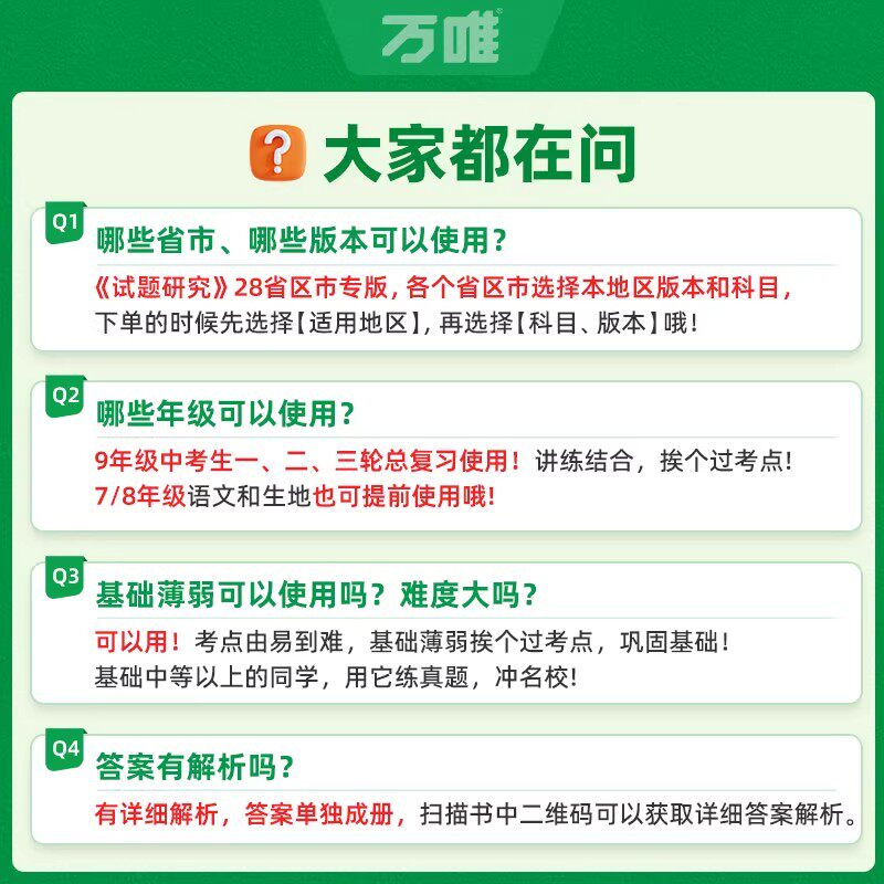 天猫【地区任选】2026万唯中考试题研究语文数学英语物化政治历史生物地理中考初三总复习资料全套七八九年级真题辅导书万维教育旗舰店