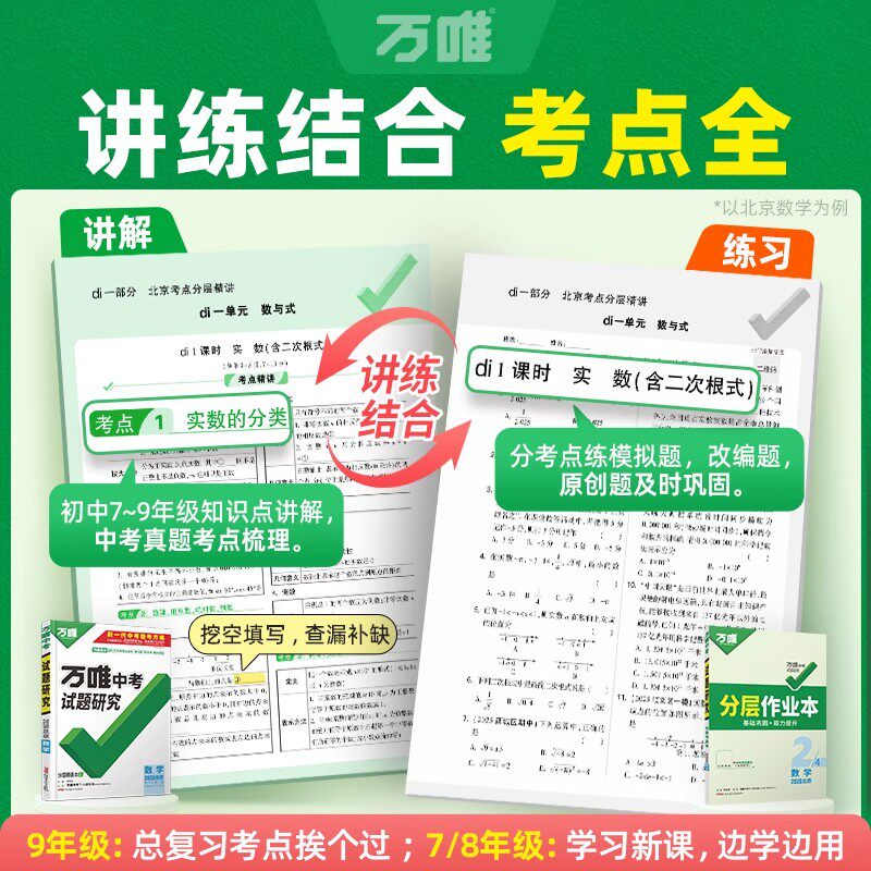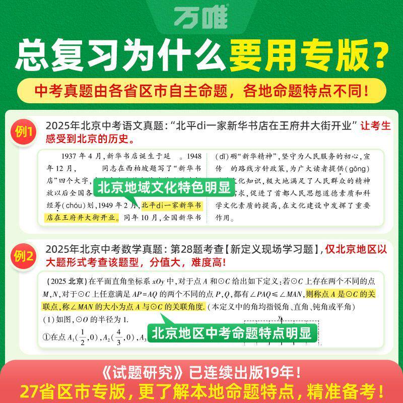 2026万唯中考试题研究系列,专为初三学子打造,覆盖语文、数学、英语、物理、化学、政治、历史、生物、地理九大学科,紧扣最新考纲与命题趋势。精选全国多地中考真题,系统梳理七八九年级核心知识点,配备详细解析与解题技巧,助力高效复习。万维教育旗舰店正版保障,内容权威、编排科学,讲练结合,强化重难点突破。无论是基础巩固还是冲刺提分,本套资料均为中考总复习的理想之选,帮助考生夯实基础、提升能力,从容应对2026年中考挑战。