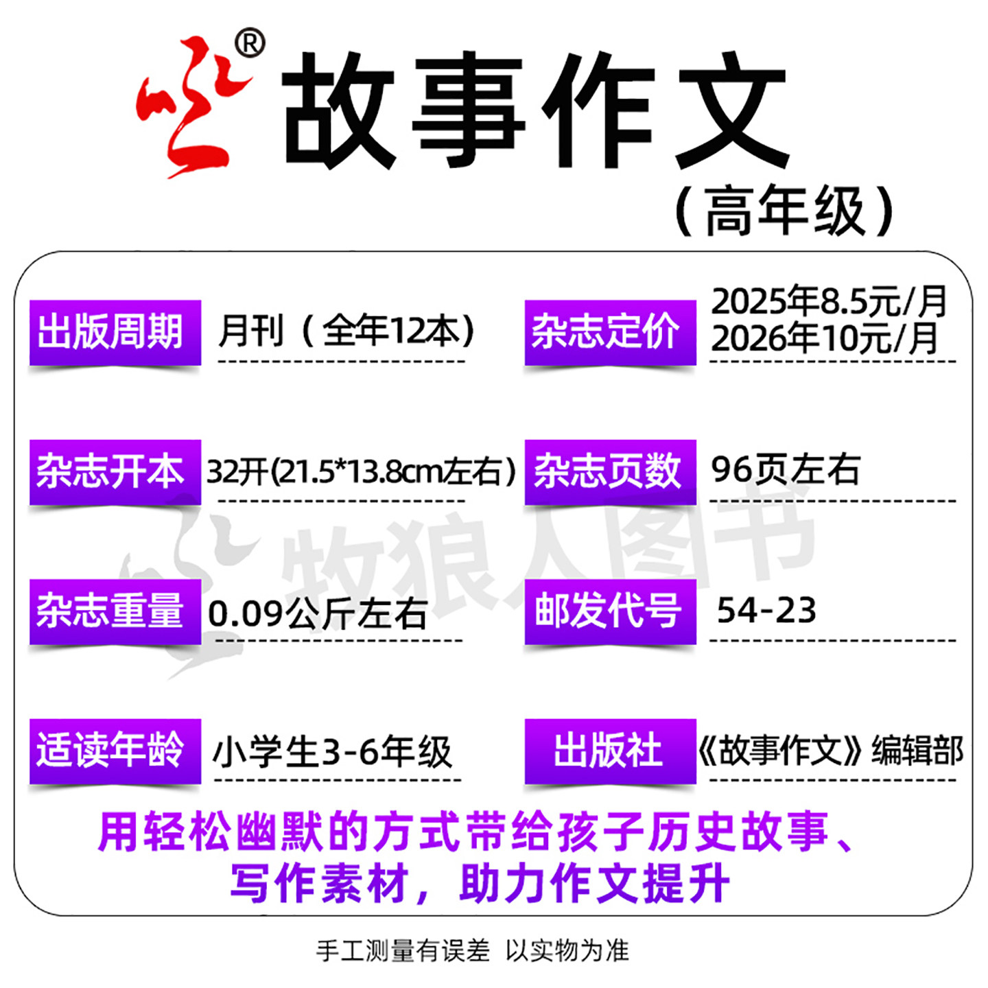 《读者·故事》作文杂志专为小学生量身打造,分低年级版(1-2年级)和高年级版(3-6年级),内容紧贴课标,助力写作能力提升。2026年1-2月合刊及2025全年/半年订阅火热进行中,精选贴近儿童生活的精彩故事、优秀范文与实用写作技巧,激发阅读兴趣,积累写作素材。杂志由《读者》团队倾力出品,品质有保障,非过刊,内容新鲜。适合小学一至六年级学生使用,是提升语文素养、培养表达能力的优质读物。现推出2024年对应年级版本,助力孩子在新学期赢在起跑线。