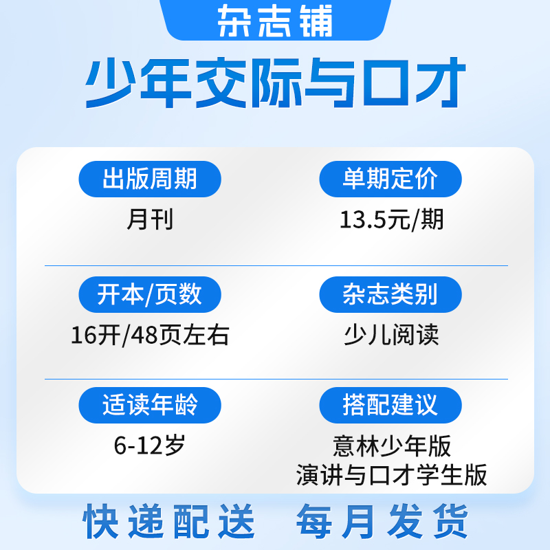 天猫少年交际与口才杂志 2026年1月起订阅 1年共12期 杂志铺少儿兴趣阅读 趣味智力题交际能力口语表达文学读物