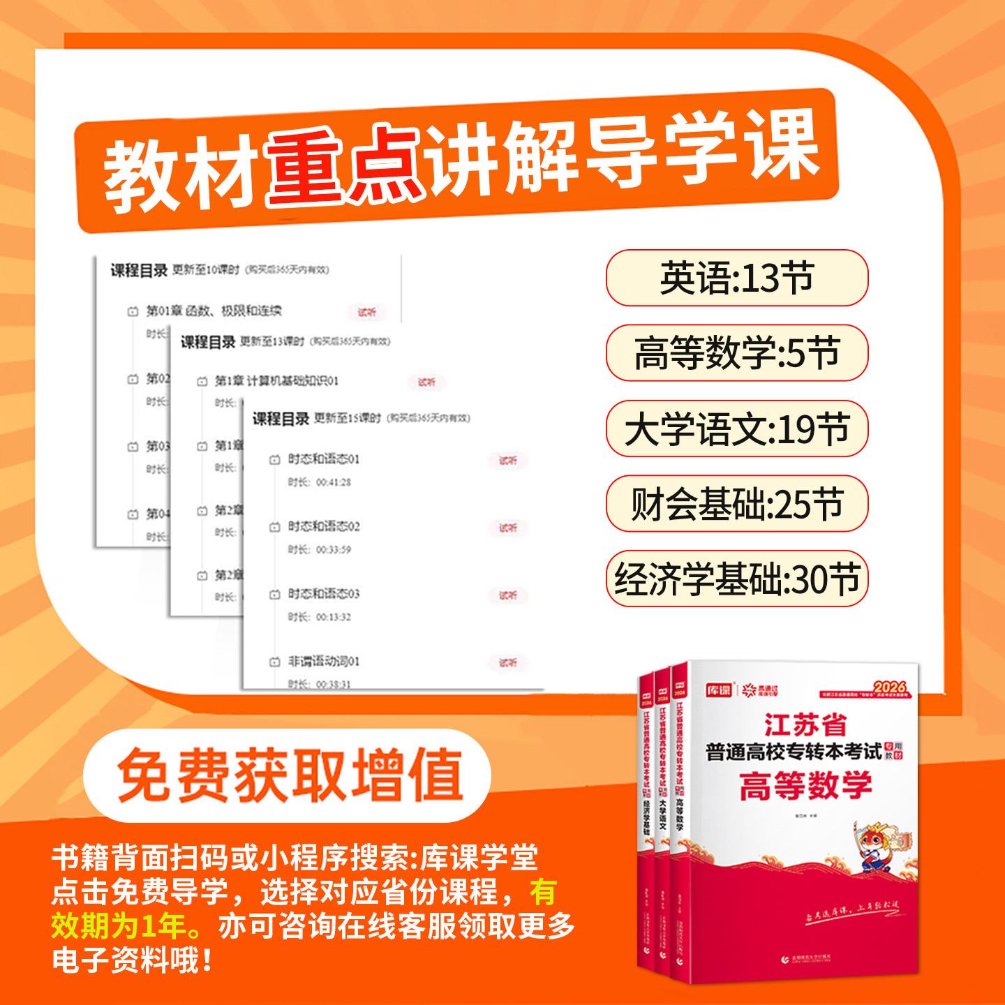 库课2026年江苏省专转本系列教材专为备考学生精心打造,涵盖高等数学、语文、经济学、财经管理、电子信息类、英语、计算机、医护、美术设计等多个专业方向。教材紧扣最新考试大纲,内容系统全面,重难点突出,配有大量精选习题、历年真题及模拟试卷,助力考生高效复习。高数部分注重逻辑推导与解题技巧;语文强化阅读与写作能力;专业课如财经、电子、医护等结合行业实际,提升应用能力。全书结构清晰,讲练结合,是江苏省专转本考生备考的理想复习资料,帮助考生夯实基础、突破瓶颈,顺利实现本科升学目标。