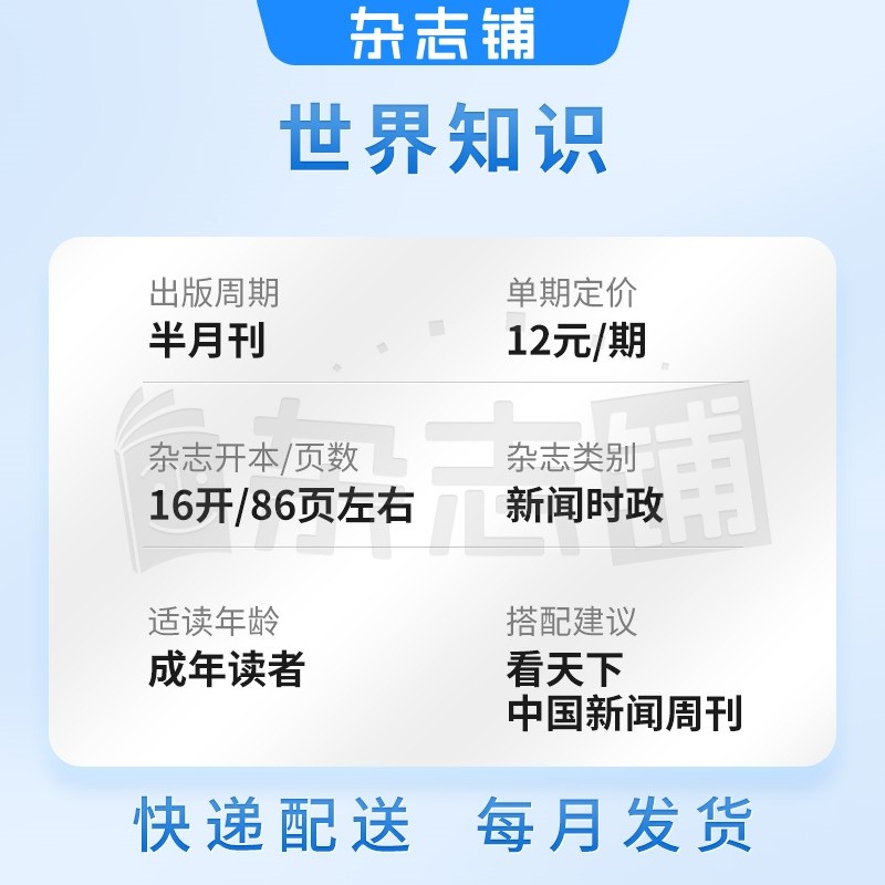 天猫世界知识杂志订阅 2026年1月起订 1年共24期 介绍世界的大型期刊 深入报道 专题报道 外交文化 时政新闻期刊杂志 杂志铺