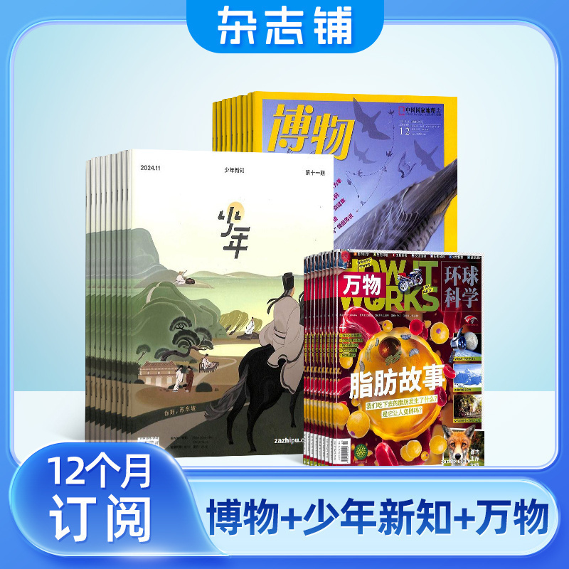 天猫博物+少年新知+万物杂志组合 2026年1月起订 1年共36期 杂志铺全年订阅 青少年思维启蒙艺术文学 少儿科普读物小学生课外阅读期刊