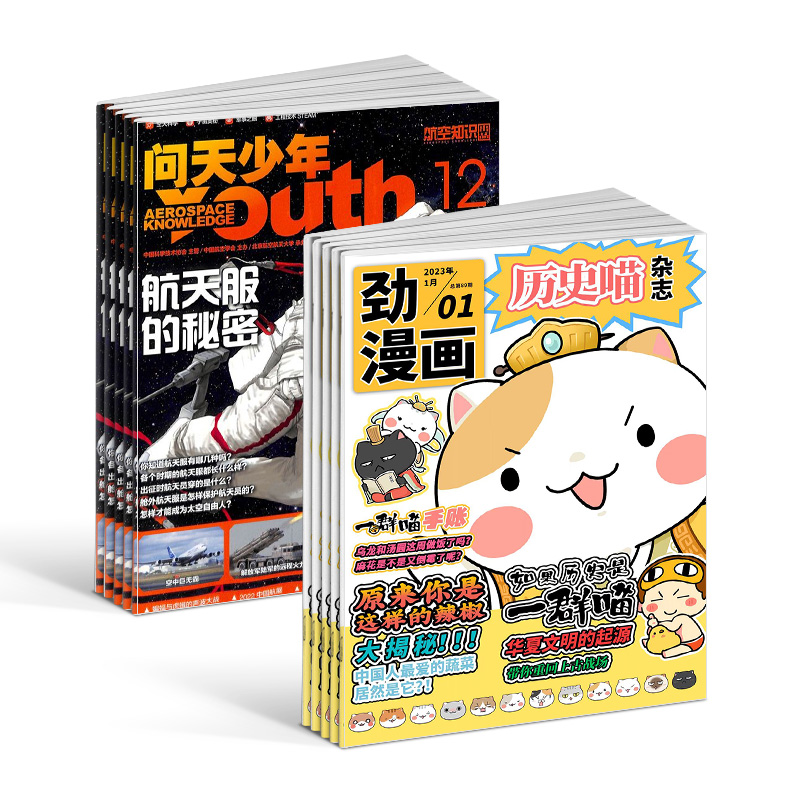 天猫历史喵+问天少年杂志组合成订阅 2026年1月起订 1年共24期 少儿兴趣阅读历史漫画书 如果历史是一群喵 肥志创作团队出品 杂志铺