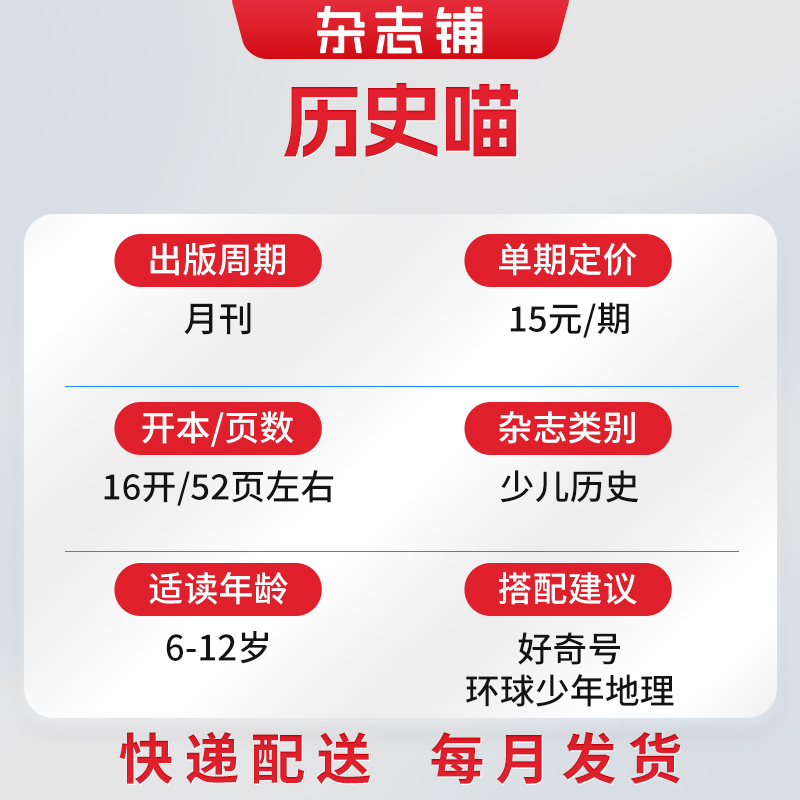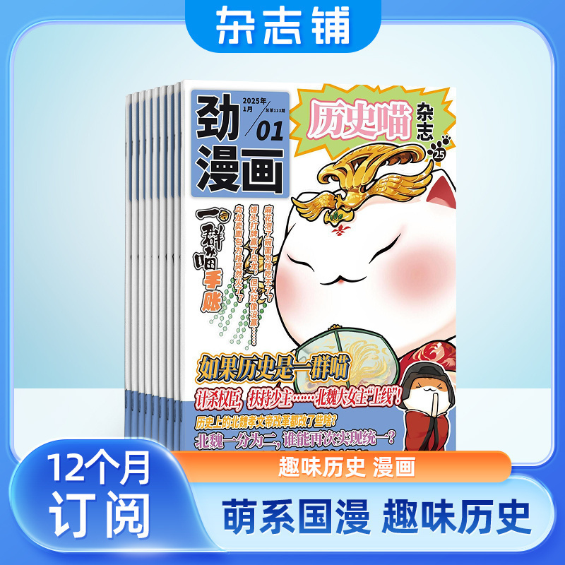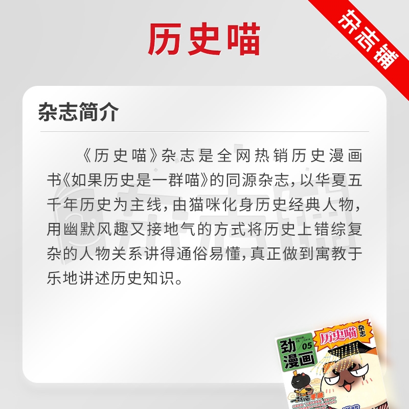 天猫【包邮】历史喵杂志 2026年1月起订 1年共12期 6-12岁少儿兴趣阅读历史漫画书 杂志铺 幽默风趣历史漫画书 中小学生课外阅读