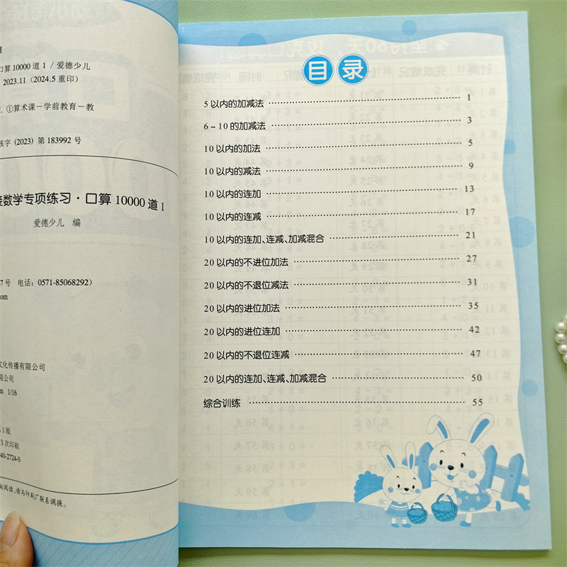 天猫爱德少儿口算题卡10000道3-6岁每日一练小学一年级数学思维训练口算心算岁幼小衔接数学专项训练习