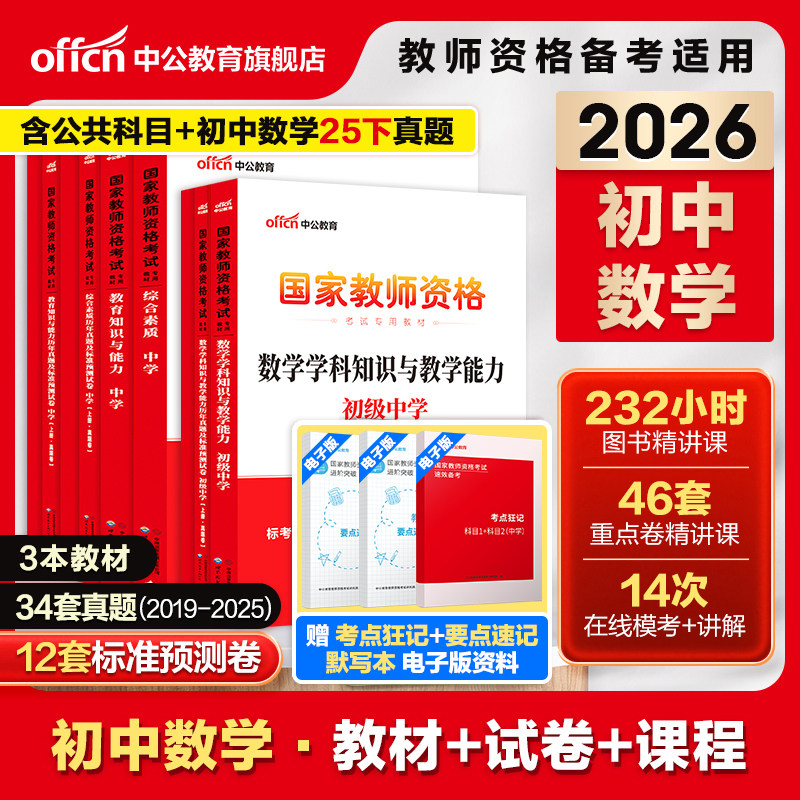 天猫中公2026上半年教资考试资料中学2025教师证资格考试用书教材真题初中高中数学语文英语美术体育音乐政治历史地理物理化学生物信息
